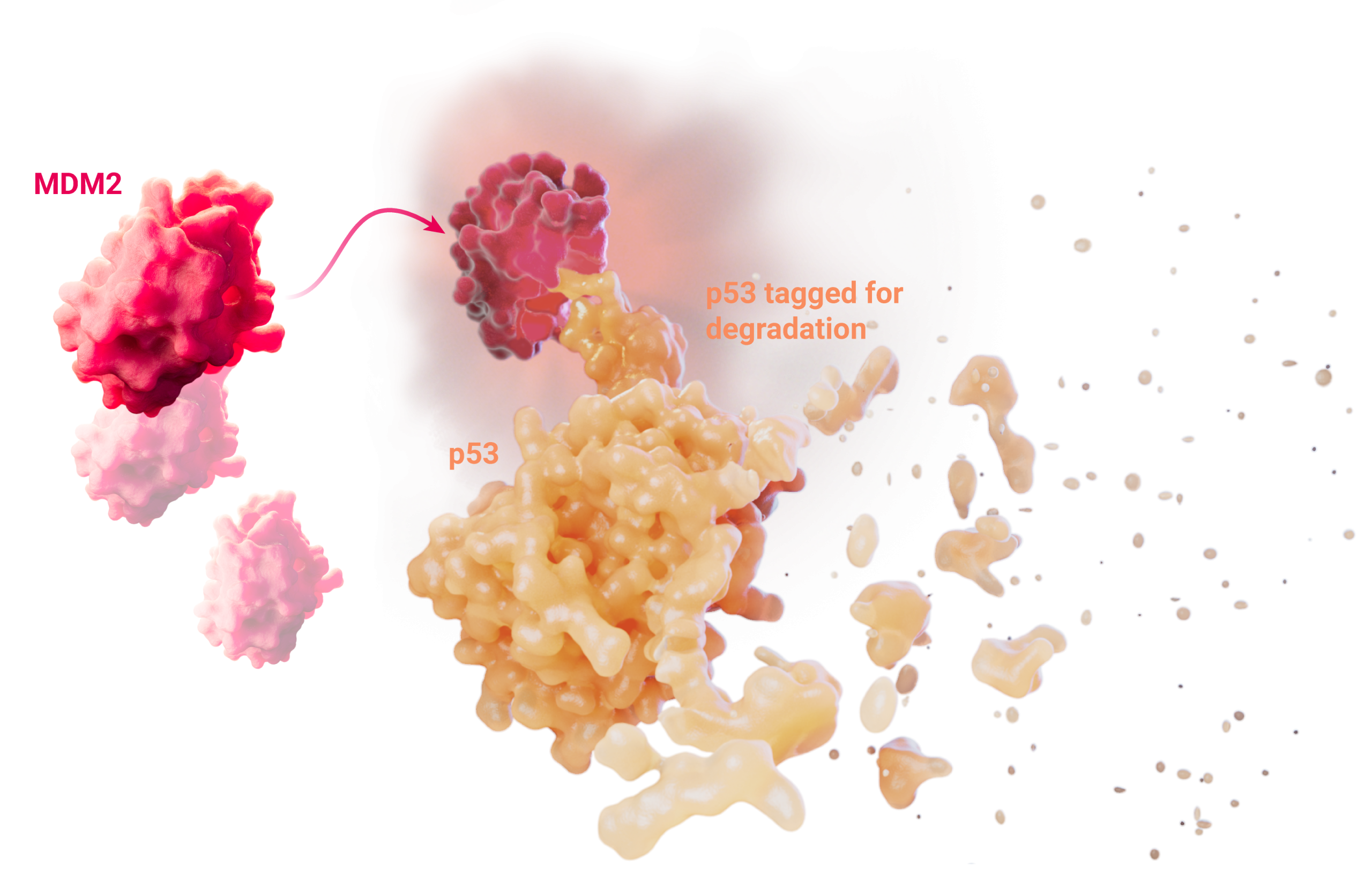 In healthy cells, activated MDM2 maintains p53 at very low levels. In cancer, however, malignant cells resist activated p53 cell killing by mutating p53 or abnormally elevating MDM2 levels, resulting in unchecked cancer cell proliferation.1,2